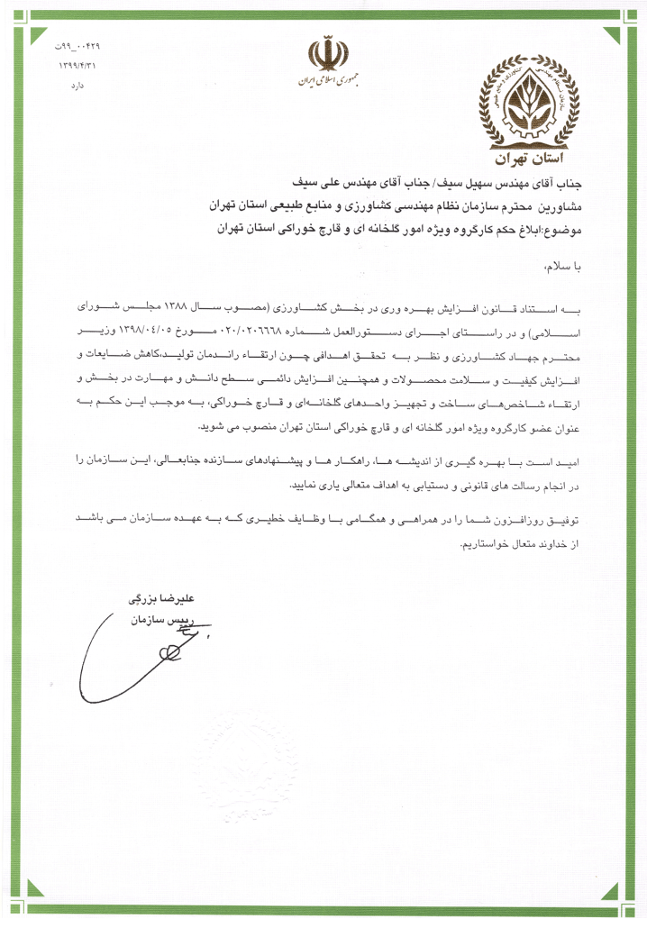 با توجه به نیاز کشور به صنعتی سازی کشاورزی و استفاده بهینه از منابع آب، شرکت مهندسی سریرپی پس از مدت ها پژوهش، مطالعه و تحقیق نسبت به راه اندازی دپارتمان گلخانه در شرکت اقدام نمود، و نهایتا موفق به اخذ رتبه سه رشته گلخانه در رسته پیمانکاری گردید. هم اکنون شرکت سریرپی عضو فعال سندیکای گلخانه سازان کشور می باشد.